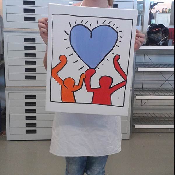 Samen met een kunstenaar ga je ontdekken hoe de wereld van Keith Haring eruit ziet. Na het zien van verschillende voorbeelden ga je je eigen Keith Haring schilderij maken. Helemaal passend bij jou, schilder je hobby, je favoriete muziekstijl of jezelf in de stijl van Keith Haring.