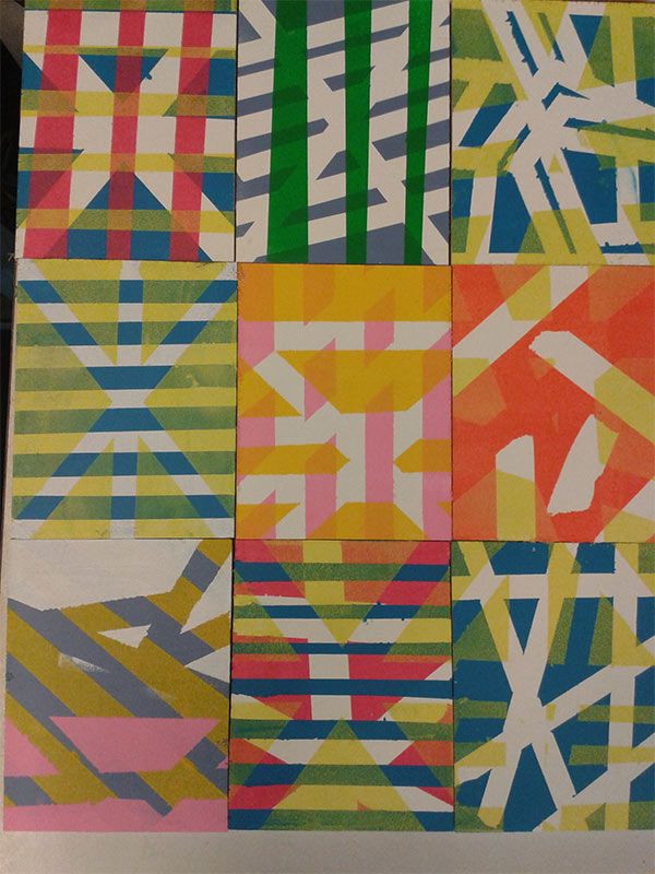 Creëer je eigen beeld van tape, dit kan van alles zijn: figuratief/abstract/tekst etc. Interessant is het om met de achtergrond te werken om spannende vlakverdelingen te maken.